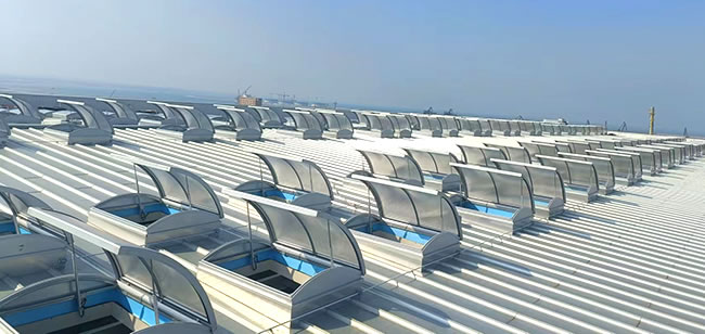 圓拱形的設計,外觀優美、通風排煙兼顧自然采光,開啟角度一般為30度到45度***開啟角度為90°。