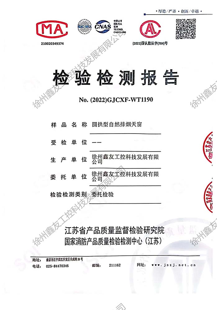 圓拱型電動(dòng)排煙天窗檢測(cè)報(bào)告190