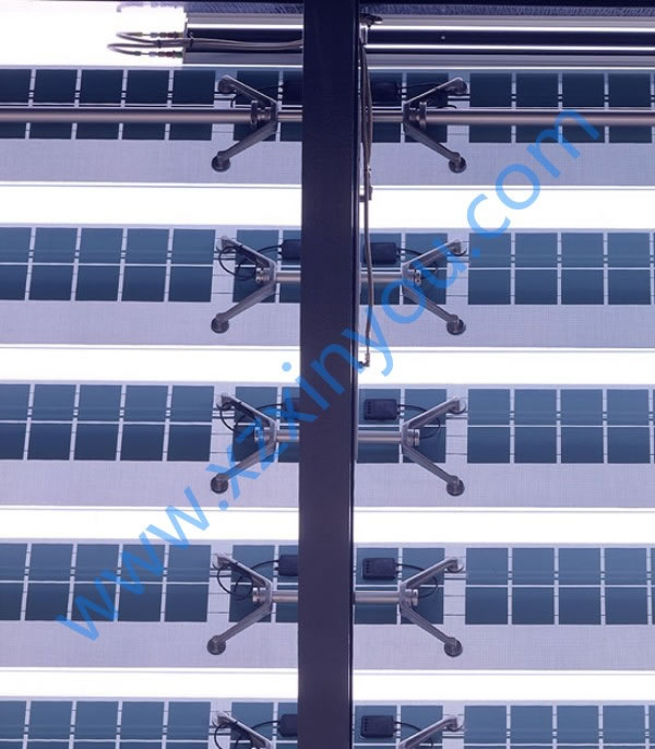光伏百葉,能夠有效的將太陽能轉(zhuǎn)化為電能、動能,同時百葉滿足日常的采光、遮陽這樣功能。光伏百葉環(huán)境控制單元可以預(yù)置對風(fēng)、雨、光、溫、煙等感應(yīng)參數(shù),使之通過外置感應(yīng)器,對超限值作出及時回應(yīng)進(jìn)而控制百葉動作,完全實(shí)現(xiàn)了綠色環(huán)保節(jié)能的建筑理念。