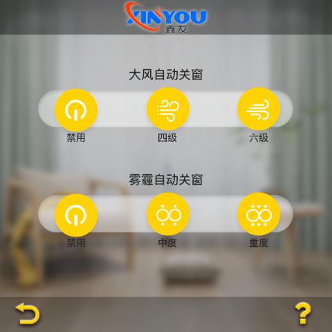 d)、家中無人時開啟智能模式,能夠適應天氣自動開關窗,霧霾及雨天自動關窗,天氣晴好時自動開窗;