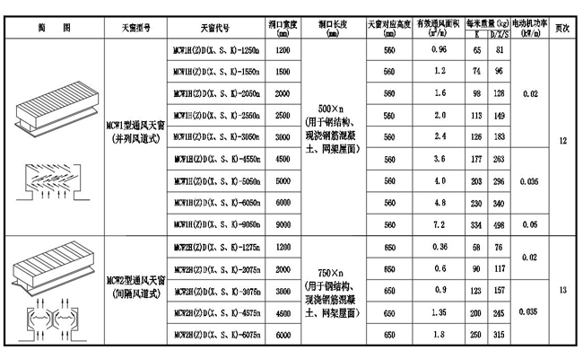 2. MCW2型通風天窗(間隔風道式)